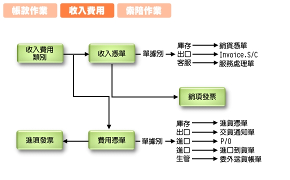 各業務單據產生的收入、費用可在帳款管理中的收入單、費用單中統一實現。